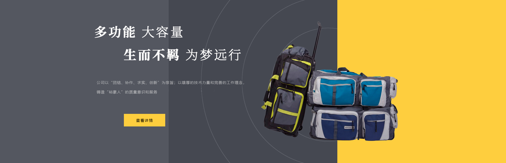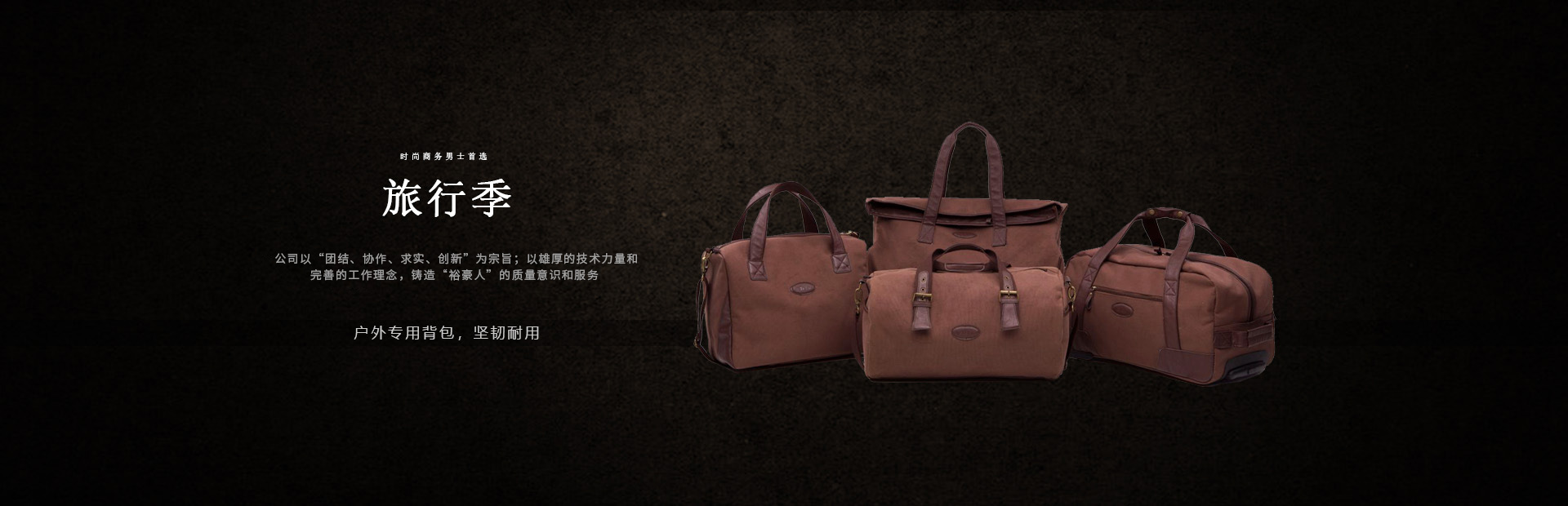 本公司是一家集设计,制造,加工,贸易为一体的专业箱包生产出口企业。已有20多年箱包生产经验。公司厂区位于中国浙江省海宁市盐官工业园区,占地15000平方米,建筑面积10000平方米,员工150人,年生产能力260万只(套)。 公司以尼龙,涤沦,牛津布,P...